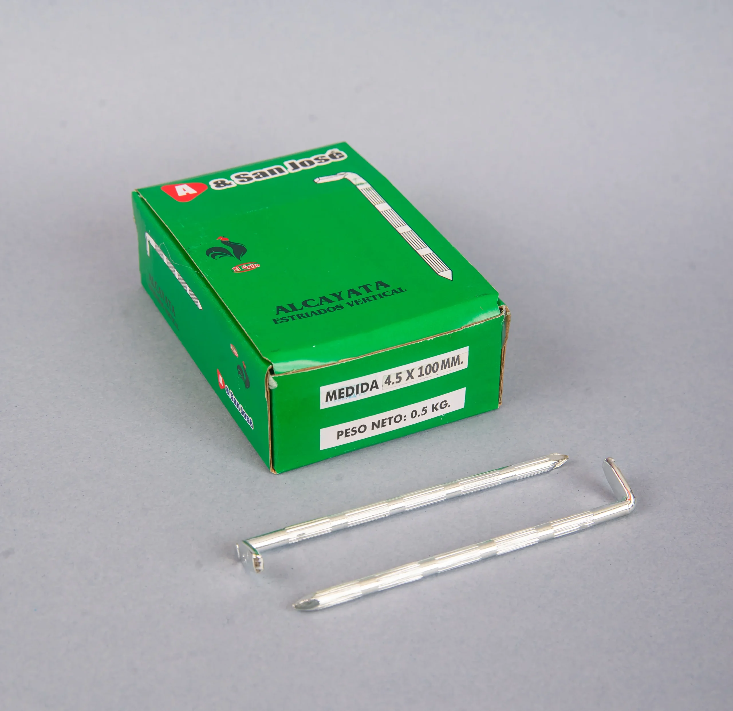 La alcayata estriado vertical es un accesorio metálico en forma de gancho roscado, diseñado con estrías que mejoran su fijación en superficies de madera, concreto o paredes preparadas. Su estructura reforzada garantiza resistencia y durabilidad en diferentes tipos de uso.
