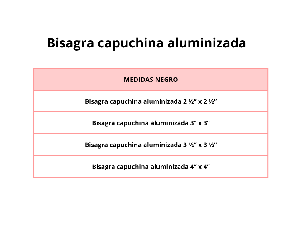 La bisagra capuchina aluminizada es un herraje diseñado para brindar soporte y movilidad en estructuras metálicas o de madera. Su recubrimiento aluminizado protege contra la corrosión y el desgaste, garantizando mayor durabilidad incluso en ambientes exigentes. El diseño “capuchina” ofrece un acabado discreto y estético, ocultando los puntos de fijación.