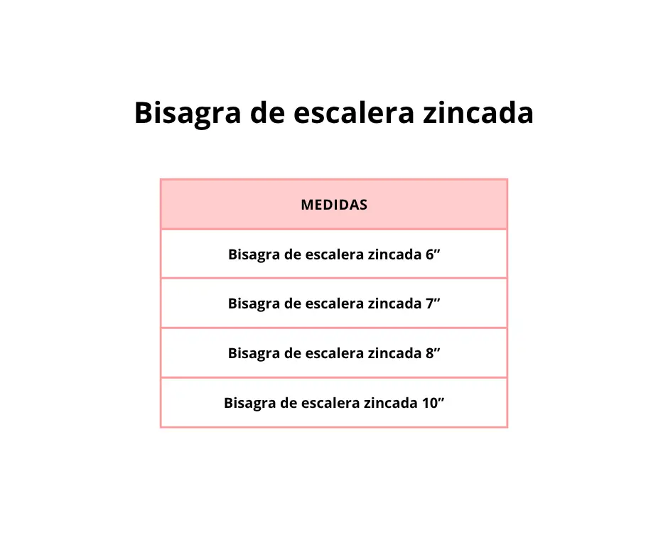 La bisagra de escalera zincada es un herraje diseñado especialmente para permitir la apertura, cierre y plegado seguro de escaleras metálicas o de madera. Su recubrimiento de zinc incrementa la resistencia frente al óxido y al desgaste por uso continuo.