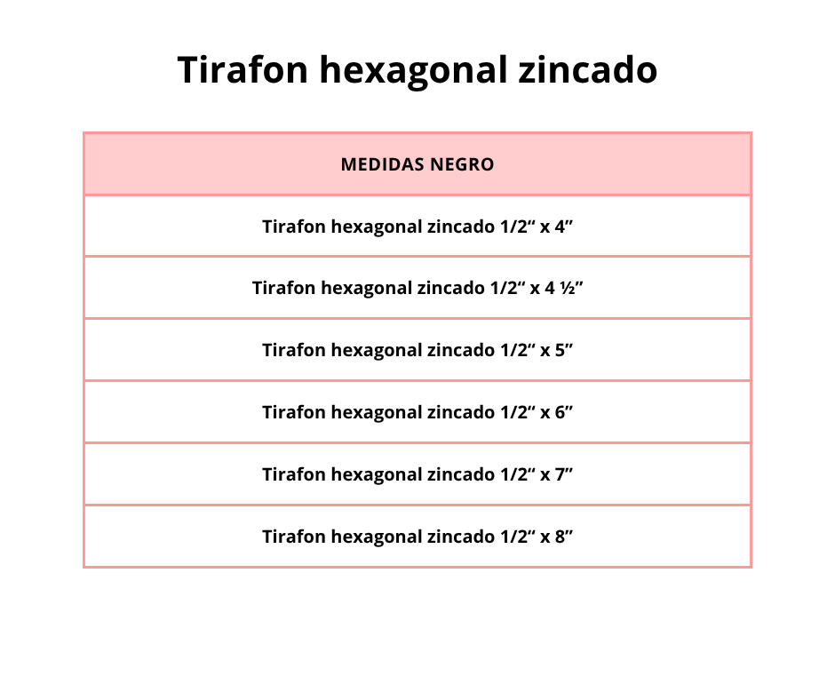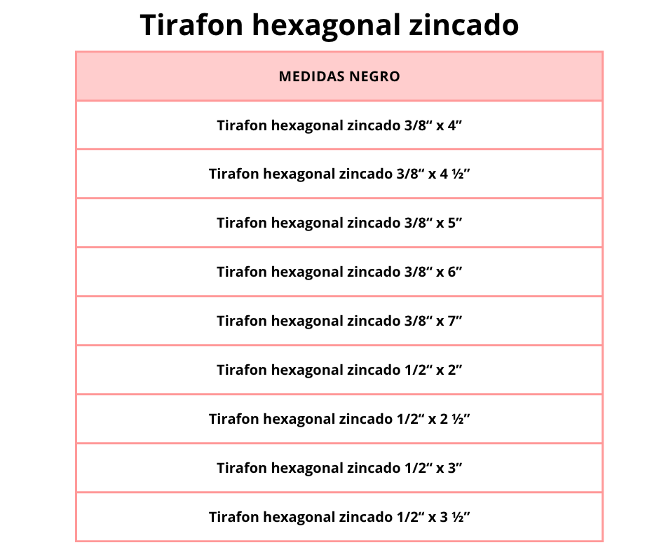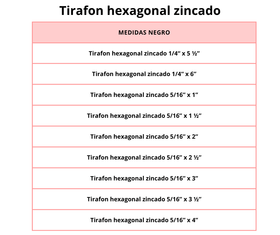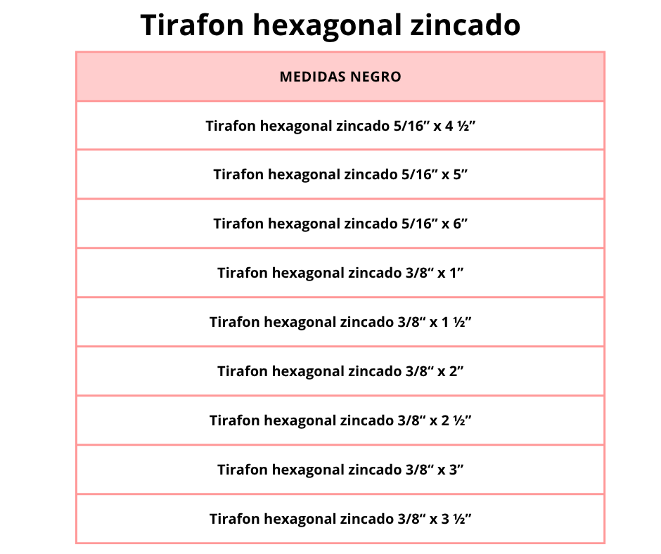 El tirafón hexagonal es un tornillo de gran resistencia fabricado en acero, con cabeza en forma de hexágono que permite un ajuste firme mediante llaves o herramientas de impacto. Su diseño roscado de gran diámetro lo hace ideal para soportar altas cargas y garantizar uniones seguras en madera y estructuras pesadas.