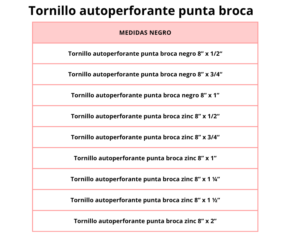 El tornillo autoperforante es un fijador fabricado en acero de alta resistencia con recubrimiento protector, diseñado para perforar y fijar en un solo paso, sin necesidad de realizar una perforación previa. Su punta tipo broca y su rosca afilada permiten un agarre seguro y rápido en superficies metálicas, maderas y perfiles delgados.