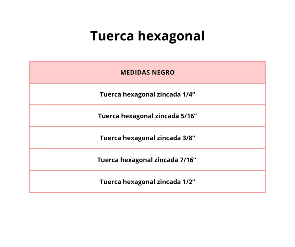 La tuerca hexagonal es un sujetador compacto con seis caras planas que permite un apriete preciso y seguro en múltiples tipos de ensamblajes. Su diseño geométrico facilita la transmisión de torque de manera eficiente, evitando deslizamientos y asegurando un ajuste confiable.